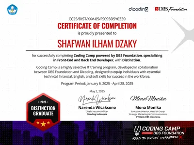 Coding Camp bootcamp focused on full stack web development by Dicoding Indonesia and DBS Foundation.